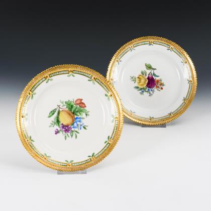 Form "Flora Danica" mit Zackenrand. Im Spiegel ein Blumenbukett mit Frucht