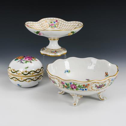 Vierpassschale (H 10,5 cm), Schale mit 4 Füßen (Ø 22 cm) und Kugeldose (Ø 12 cm)