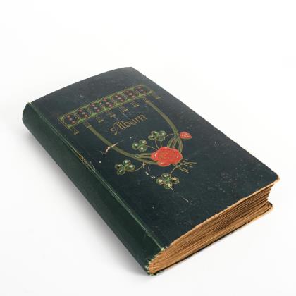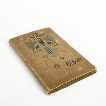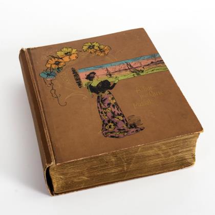 Karten mit Motiven aus Nordafrika, vor 1945. Graues Jugendstilalbum mit Schwalben und "Album"
