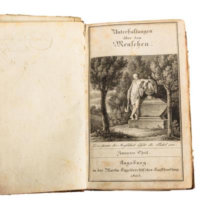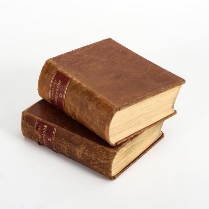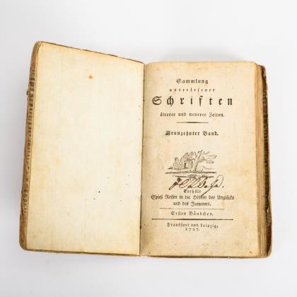 Umfangreicher Textband ohne Seitenzählung, zwei Stahlstiche. Leineneinband