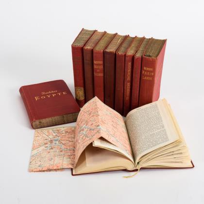 "Egypte et Sudan" 1908, in französischer Sprache / "Grèce" (Griechenland) 1910, in französischer Sprache / "Mittelmeer, Seewege, Hafenplätze, Landausflüge mit Marokko, Algerien, Tunesien" 1934 / "Belgique et Hollande" (19. Ausgabe) in französischer Sprache / "Norddeutschland - Reisehandbuch für Bahn und Auto" 1936 / "Berlin und Umgebung" 1921 / "Thüringen, südliche Provinz Sachsen, Frankenwald" 1925 / "Thüringen, Provinz Sachsen, südlicher Teil Leipzig, Kassel, Hannover, Bamberg, Würzburg" 1920 / "Die Rheinlande, Schwarzwald, Vogesen" 1912 / "Autoführer Deutsches Reich" Band I, 1938