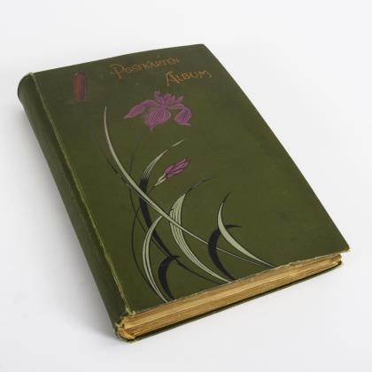 Ansichten vor 1945. Dickes Lederalbum mit Goldprägung "Album für illustrierte Postkarten"