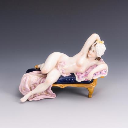 Jugendstil-Buchstütze: Frauenakt an der Mauer