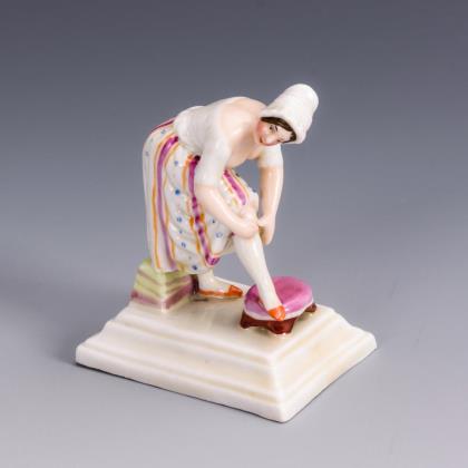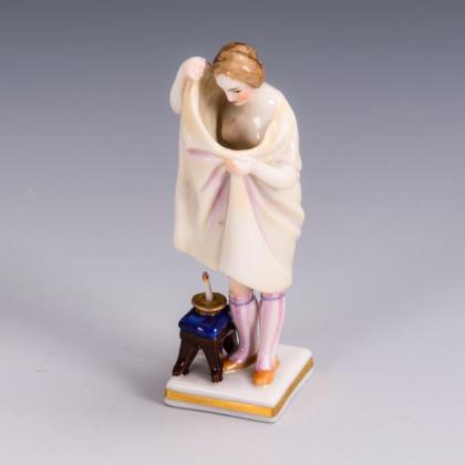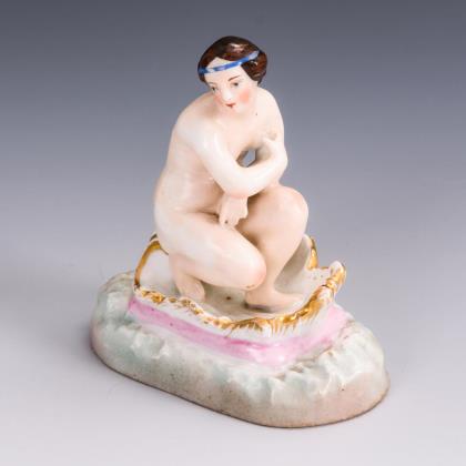 An den antiken Typ einer Venus pudica angelehnte Gestaltung der Frau mit halb herabgelassenem Tuch