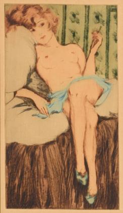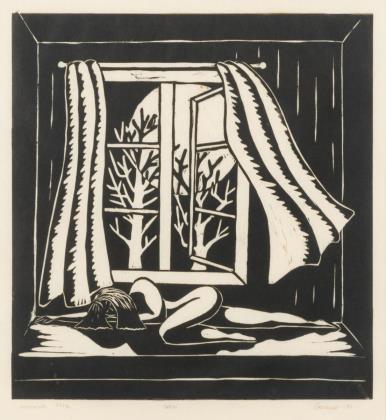 Robert Jakob Bock 1896 - 1943): "Am Ofen", Exemplar: 6/30, Platte: 30 x 21 cm, Blatt: 40 x 30 cm, im Passepartout: 53 x 36,5 cm und undeutlich signiert: Baumnymphe, Platte: 36,5 x 50 cm, Blatt: 47 x 64,5 cm, im Passepartout: 50 x 65 cm