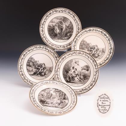 Im Spiegel bezeichnete, antike Figurenszenen der griechischen Mythologie, Fahnen mit Blütendekor