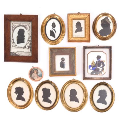 Neben den Bildnissen 1 sitzender Offizier mit Orden und Pickelhaube (Großherzogtum Hessen) und 1 Soldat mit Pickelhaube sowie 1 Schalmei spielender Knabe als Seidenmalerei im Kupferrahmen