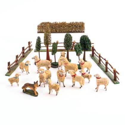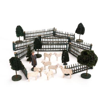 12 Schäfchen, 1 Masse-Hund, 6 Luffabäume, 1 Luffa-Hecke und 3 Zaunelemente