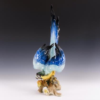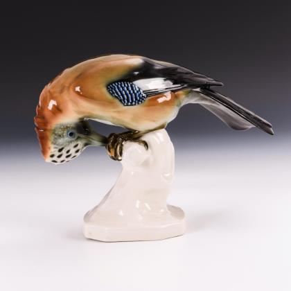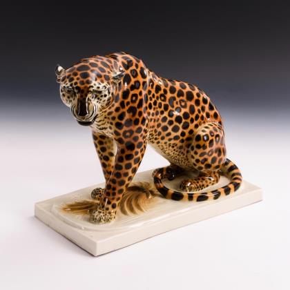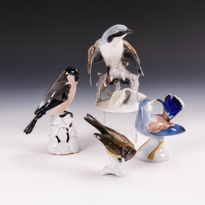 Liegendes Fohlen (L 13,5 cm), springender Schimmel (H 8 cm), Leopard (H 7 cm) und Auerhahn (H 5 cm)