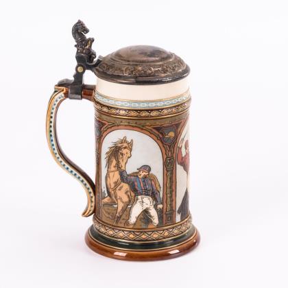 Seltener Mettlach-Krug mit Jockey-Szenen