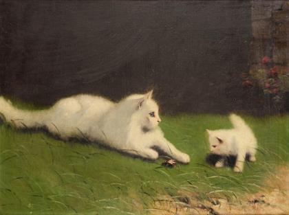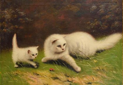 Weiße Katzen im Garten