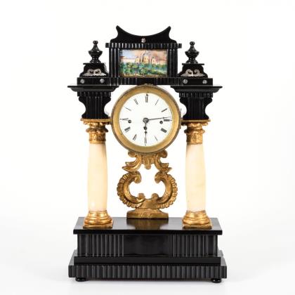 Biedermeier-Portaluhr mit Ansicht des Wiener Belvedere
