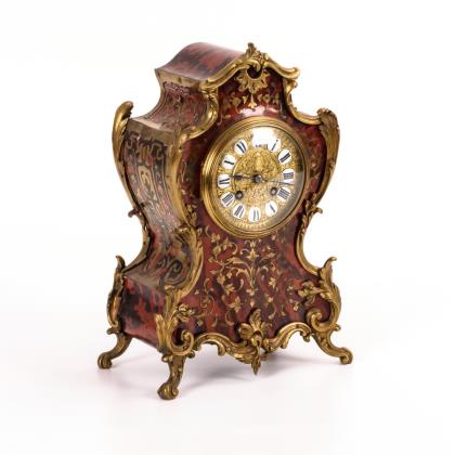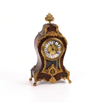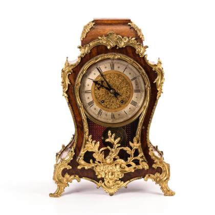 Tailliertes Gehäuse mit floralen Marketerien im Boulle-Stil und Beschlägen mit Rocaillezier, schauseitige Pendelsicht