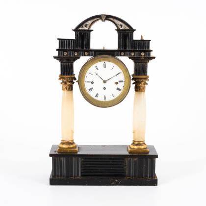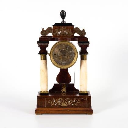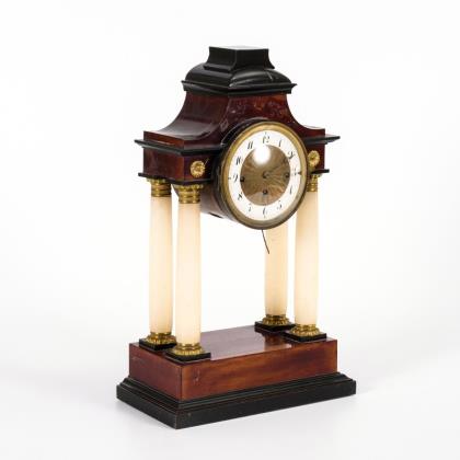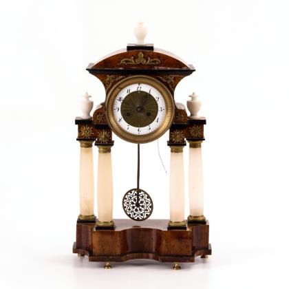 Biedermeier-Portaluhr mit 4 Alabastersäulen