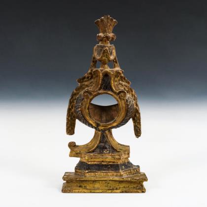 Floral reliefiertes Gehäuse, rückseitig mit leerer Wappenkartusche