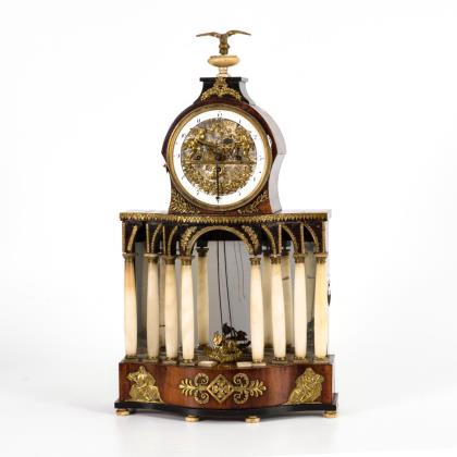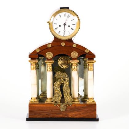 Prachtvolle Biedermeier-Portaluhr mit 8 Alabastersäulen und Figurenautomat