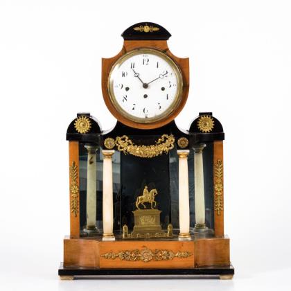 Biedermeier-Portaluhr mit antikisierendem Reiterstandbild