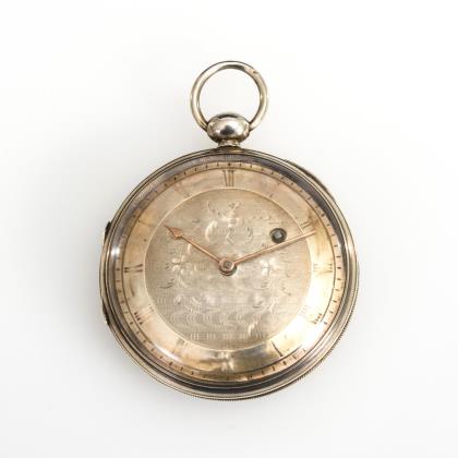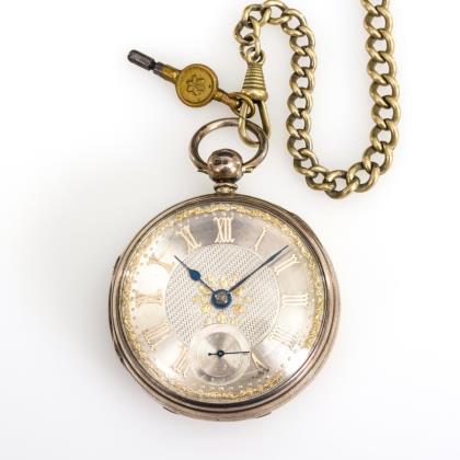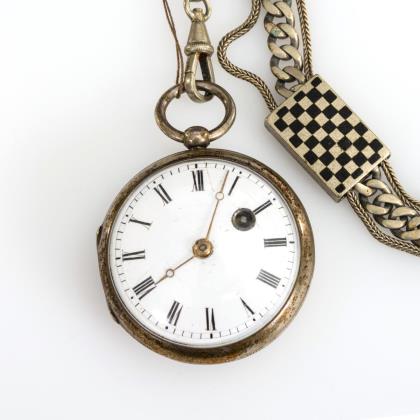 Silberne Schweizer Taschenuhr an Metall-Uhrenkette