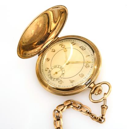 Vergoldete Art-déco-Sprungdeckeluhr mit Uhrenkette