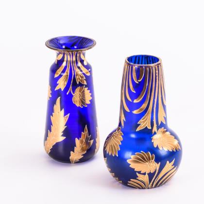 2 Kobaltvasen mit Goldmalerei