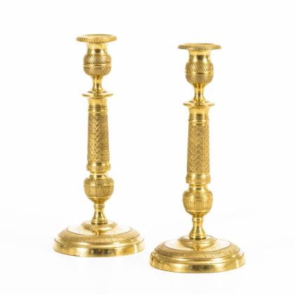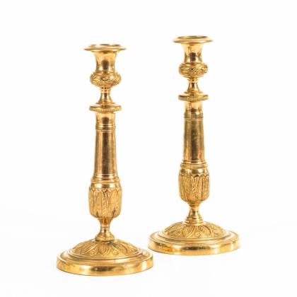 Paar vergoldete Biedermeier-Kerzenleuchter