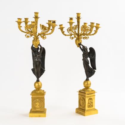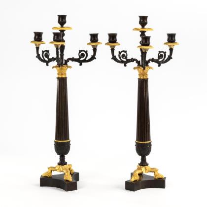 Paar große, 4-flammige Prunk-Kandelaber im Empire-Stil