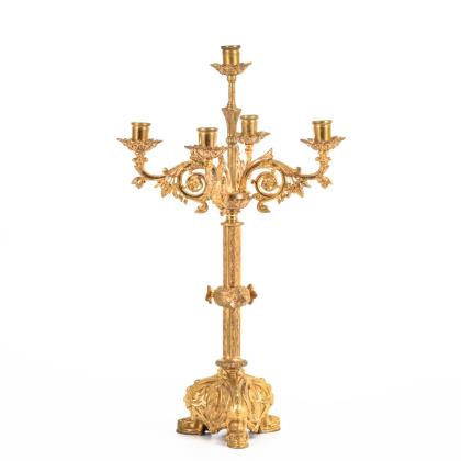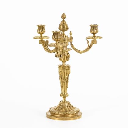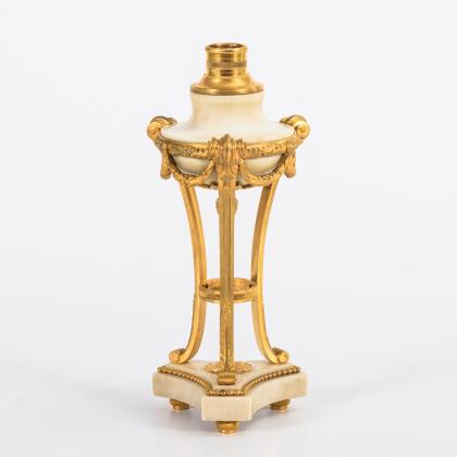 Rundfuß und Schaft aus Marmor, reliefierte Bronzearme mit Behang sowie erhöhte Zentraltülle