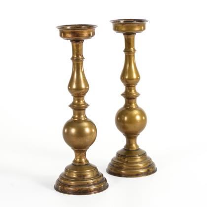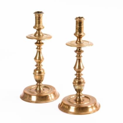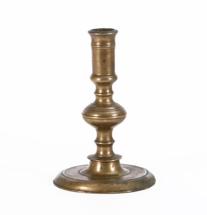 Bronzeleuchter mit gestuftem Rundfuß, Balusterschaft und Wachsteller