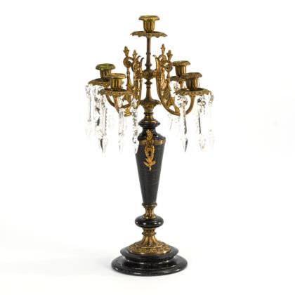 5-flammiger Leuchter mit Marmorschaft und Glasbehang