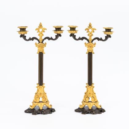 Paar ungewöhnliche 2-flammige Prunk-Kandelaber
