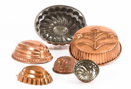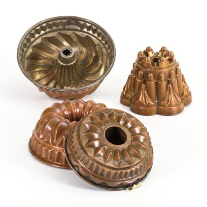 3x ornamental reliefierte Gugelhupfformen, 1x Wiener Form