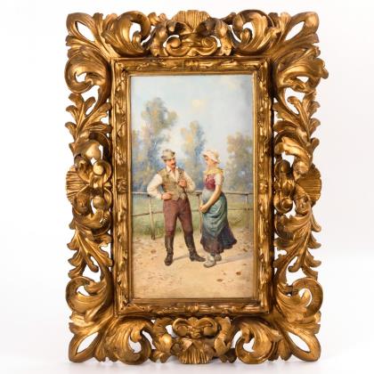 Profilierter Leistenrahmen mit aufgelegten Reliefs im Stil des Barock