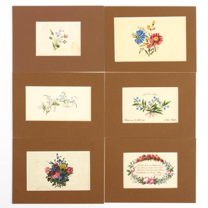 11 Biedermeier-Stammbuchblätter im Passepartout