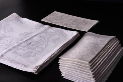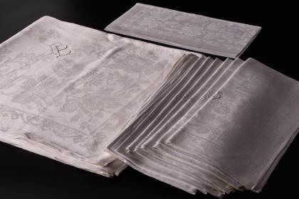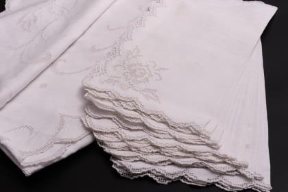 Sehr großes Tafeltuch und 11 Servietten um 1882