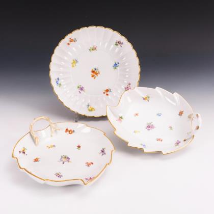Fächerschale und 2 Blattschalen mit Streublümchenmalerei