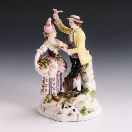 Modell von Friedrich Elias Meyer 1760. Farbig bemalt, gold staffiert. Ritzmarke, Pressmarke, Malermarke, Schwertermarke