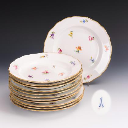 12 Speiseteller mit Streublümchenmalerei