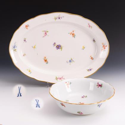 Platte und Schüssel mit Streublümchenmalerei