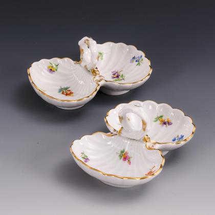 Paar Salieren mit Streublümchenmalerei