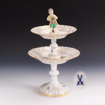 Tafelaufsatz mit zwei Durchbruchtellern und einem Gärtnerknaben mit Blumenkranz