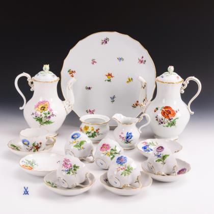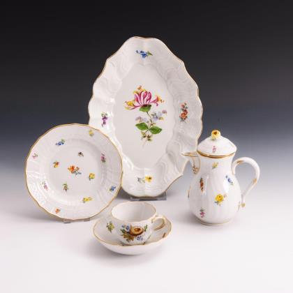 Kaffeeservice mit Blumen- und Insektenmalerei