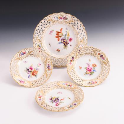 1 + 3 Durchbruchteller mit Blumenmalerei