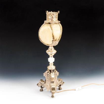 Unter Verwendung alter Teile zusammengesetzte Lampe mit Augsburger Silberfuß (1747-1749) und Lampenschirm