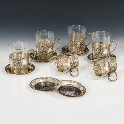 6 Teegläser mit Untersetzern