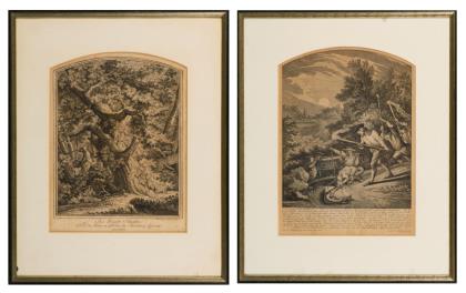 Blatt 6 und 8 der Folge von 10 Radierungen "Landschaften mit mythologischen Figuren"