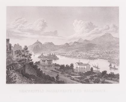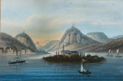 4 Ansichten mit Umgebungen des Flusses Rhein, bezeichnet: "Caub und die Pfalz", "Drachenfels Nonnenwerth und Rolandseck", "Mäuseturm und Ehrenfels", "Stolzenfels"