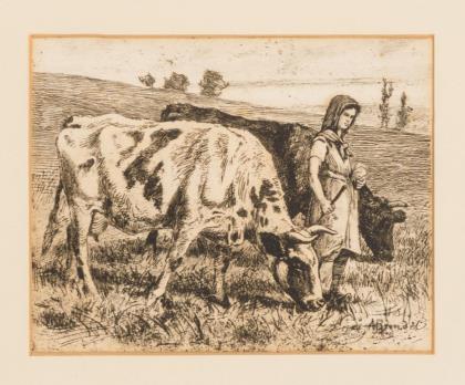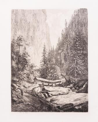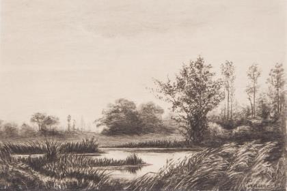 Fein und detailreich ausgeführter Landschaftsausschnitt. Signiert: Laurence. Passepartout