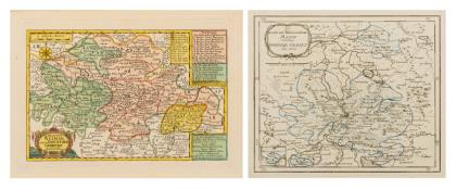 "Das Herzogthum Weimar nebst dem Erfurther Gebiethe. in Leipzig bey Joh. Georg Schreibern", Titelkartusche, Meilenzeiger und Legende, Platte: 18,5 x 26,6 cm, Blatt: 21,5 x 30 cm | "Das zum Erzstift und Kursfürstenthume Manz Gehörige Erfurter Gebiet. No. 230.", Titelkartusche, Meilenzeiger, Kartusche "Amt Vargula", Platte: 23 x27,5 cm, Blatt: 30 x 42 cm