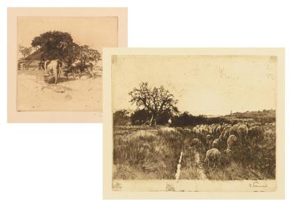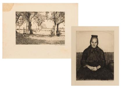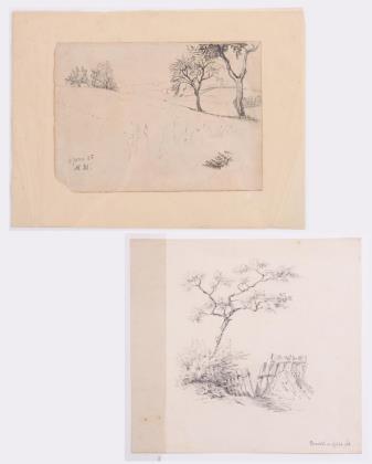 "Der Baum am Gatter" und "Landschaftsstudie mit Bäumen"