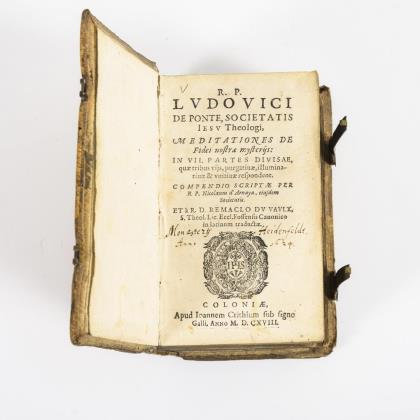 Ordensliteratur der Jesuiten. Titelblatt, (32), 775, (15) Seiten. Geprägter Pergamenteinband der Zeit mit Schließen